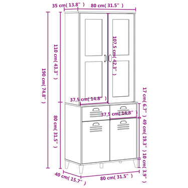 Highboard VIKEN Weiß 80x40x190 cm Massivholz Kiefer