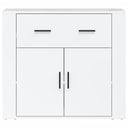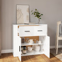 Dieses praktische Sideboard wird unterschiedlichen Anforderungen gerecht und ist eine ideale Ergänzung zu deinem Zimmer. Langlebiges Material: Dieser Schrank ist aus Holzwerkstoff gefertigt. Holzwerkstoff ist ein Material von außergewöhnlicher Qualität mit glatter Oberfläche, das sich durch Festigkeit, Stabilität und Feuchtigkeitsbeständigkeit auszeichnet.Viel Stauraum: Mit Fächern und Schubladen versehen, bietet das Sideboard reichlich Platz, um verschiedene Alltagssachen gut organisiert und in Reichweite aufzubewahren.Stabile Oberplatte: Du kannst auch deine Lieblingsfotos, Dekoartikel oder Topfpflanzen auf diesen Schrank stellen, um dein Leben zu bereichern.Praktisches Design: Dieser Lagerschrank verfügt über Türen, die deine Sachen vor Staub und Schmutz schützen. Achtung:Um das Umkippen zu verhindern, muss dieses Produkt mit der mitgelieferten Wandhalterung gesichert werden. Hinweis:Jedes Produkt wird mit einer Montageanleitung in der Verpackung für eine einfache Montage geliefert.