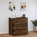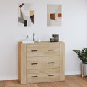 Dieses praktische Sideboard wird unterschiedlichen Anforderungen gerecht und ist eine ideale Ergänzung zu deinem Zimmer. Langlebiges Material: Dieser Schrank ist aus Holzwerkstoff gefertigt. Holzwerkstoff ist ein Material von außergewöhnlicher Qualität mit glatter Oberfläche, das sich durch Festigkeit, Stabilität und Feuchtigkeitsbeständigkeit auszeichnet.Viel Stauraum: Mit 3 Schubladen versehen, bietet das Sideboard reichlich Platz, um verschiedene Alltagssachen gut organisiert und in Reichweite aufzubewahren.Stabile Oberplatte: Du kannst auch deine Lieblingsfotos, Dekoartikel oder Topfpflanzen auf diesen Schrank stellen, um dein Leben zu bereichern. Achtung:Um das Umkippen zu verhindern, muss dieses Produkt mit der mitgelieferten Wandhalterung gesichert werden. Hinweis:Jedes Produkt wird mit einer Montageanleitung in der Verpackung für eine einfache Montage geliefert.