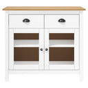 Mit unserem eleganten Sideboard aus Holz sorgt du für Ordnung in deinem Zuhause. Dieser Beistellschrank ist aus massivem Kiefernholz gefertigt und dadurch stabil und robust. Dank 2 Ablagen und 2 geräumigen Schubladen mit Bechergriffen bietet der Schubladenschrank viel Stauraum, um verschiedene Sachen ordentlich und griffbereit aufzubewahren.
