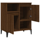 Mit seinem zeitlosen Design ist dieses klassische Sideboard eine ausgezeichnete Bereicherung für Ihr Zuhause. Langlebiges Material: Holzwerkstoff ist ein Material von außergewöhnlicher Qualität mit glatter Oberfläche, das sich durch Festigkeit, Stabilität und Feuchtigkeitsbeständigkeit auszeichnet. Aus Holzwerkstoff gefertigt, lässt sich der Schrank mit einem feuchten Tuch leicht reinigen.Viel Stauraum: Mit 4 Fächern versehen, bietet das Sideboard viel Platz, um verschiedene Alltagssachen gut organisiert und in Reichweite aufzubewahren.Präsentation: Die Oberplatte eignet sich ideal, um Dekoartikel, Fotoalben oder kleine Pflanzen zur Schau zu stellen. Gut zu wissen:Um die Montage so einfach wie möglich zu machen, wird jedes Produkt mit einer Anleitung geliefert.Die Türen können auf zwei Arten eingebaut werden. Achtung:Um ein Umkippen zu vermeiden, sollte dieses Produkt mit der mitgelieferten Wandhalterung gesichert werden.