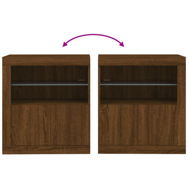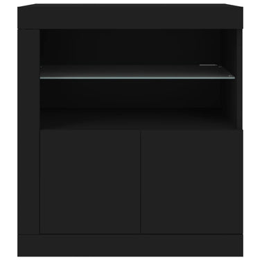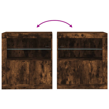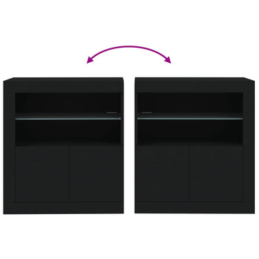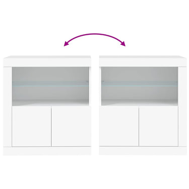 Dekoriere dein Zuhause mit diesem modernen Sideboard mit LED-Beleuchtung, das sich leicht mit Möbeln in jedem Stil kombinieren lässt. Langlebiges Material: Holzwerkstoff ist ein Material von außergewöhnlicher Qualität mit glatter Oberfläche, das sich durch Festigkeit, Stabilität und Feuchtigkeitsbeständigkeit auszeichnet.Reichlich Stauraum: Dieses Sideboard bietet viel Stauraum, damit du deine Zeitschriften, Bücher, Dekoartikel, Sammlerstücke und andere kleine Gegenstände gut geordnet und in Reichweite aufbewahren kannst.Präsentationsfunktion: Die robuste Oberplatte des Sideboards eignet sich ideal zum Ausstellen von Dekorationsgegenständen, Bilderrahmen, Topfpflanzen usw.RGB-LED-Beleuchtung: Der Schrank ist mit RGB LED-Leuchten ausgestattet. Dank verschiedenen Einstellungsmöglichkeiten kannst du die Lichtfarbe der Beleuchtung mühelos wechseln und diese sogar auf automatisch einstellen. Achtung:Um ein Umkippen zu vermeiden, sollte dieses Produkt mit der mitgelieferten Wandhalterung gesichert werden. Gut zu wissen:Das Produkt verfügt über einen USB-Anschluss, für den eine zertifizierte 5V-USB-Stromquelle erforderlich ist (nicht im Lieferumfang enthalten).