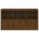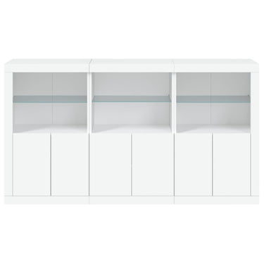 Dekoriere deinen Raum mit diesem modernen Sideboard mit LED-Leuchten, das sich leicht mit Möbeln in jedem Stil in deinem Zuhause kombinieren lässt. Langlebiges Material: Holzwerkstoff ist ein Material von außergewöhnlicher Qualität mit glatter Oberfläche, das sich durch Festigkeit, Stabilität und Feuchtigkeitsbeständigkeit auszeichnet.RGB-LED-Leuchten: Die Anrichte ist mit lebendigen RGB-LED-Leuchten ausgestattet. Mit verschiedenen anpassbaren Menüs kannst du die Farbe der Lichter mühelos wechseln und sie sogar auf automatische Anpassung einstellen. Die LED-Beleuchtung unterstreicht den modernen Look des Sideboards und trägt zu seinem trendigen Design bei.Viel Stauraum: Der Beistellschrank bietet viel Stauraum, um verschiedene Alltagssachen ordentlich und griffbereit aufzubewahren.Präsentation: Die stabile Oberplatte des Flurschranks eignet sich ideal, um Dekoartikel, Bilderrahmen oder Topfpflanzen zur Schau zu stellen.Praktische Türen: Schütze deine wichtigsten Sachen vor Staub, indem du sie hinter den Türen in diesem Beistellschrank verstaust. Gut zu wissen:Das Produkt verfügt über einen USB-Anschluss, für den eine zertifizierte 5V-USB-Stromquelle erforderlich ist (nicht im Lieferumfang enthalten). Achtung:Um ein Umkippen zu vermeiden, sollte dieses Produkt mit der mitgelieferten Wandhalterung gesichert werden.