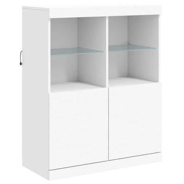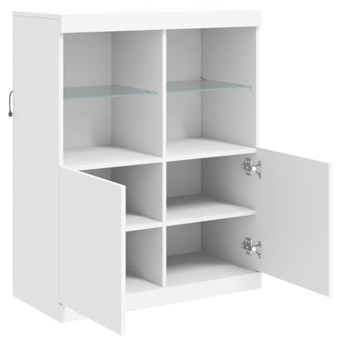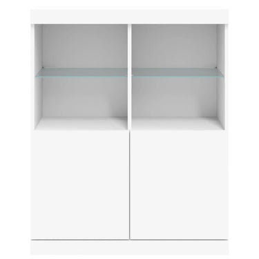 Dekoriere dein Zuhause mit diesem modernen Sideboard mit LED-Beleuchtung, das sich leicht mit Möbeln in jedem Stil kombinieren lässt. Langlebiges Material: Holzwerkstoff ist ein Material von außergewöhnlicher Qualität mit glatter Oberfläche, das sich durch Festigkeit, Stabilität und Feuchtigkeitsbeständigkeit auszeichnet.Reichlich Stauraum: Dieses Sideboard bietet viel Stauraum, damit du deine Zeitschriften, Bücher, Dekoartikel, Sammlerstücke und andere kleine Gegenstände gut geordnet und in Reichweite aufbewahren kannst.Präsentationsfunktion: Die robuste Oberplatte des Sideboards eignet sich ideal zum Ausstellen von Dekorationsgegenständen, Bilderrahmen, Topfpflanzen usw.RGB-LED-Beleuchtung: Der Schrank ist mit RGB LED-Leuchten ausgestattet. Dank verschiedenen Einstellungsmöglichkeiten kannst du die Lichtfarbe der Beleuchtung mühelos wechseln und diese sogar auf automatisch einstellen. Achtung:Um ein Umkippen zu vermeiden, sollte dieses Produkt mit der mitgelieferten Wandhalterung gesichert werden. Gut zu wissen:Das Produkt verfügt über einen USB-Anschluss, für den eine zertifizierte 5V-USB-Stromquelle erforderlich ist (nicht im Lieferumfang enthalten).