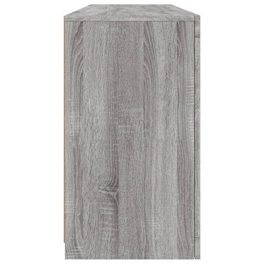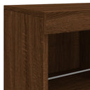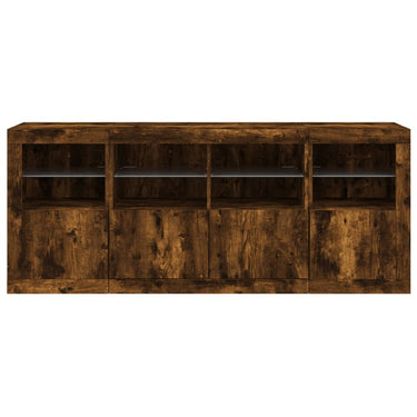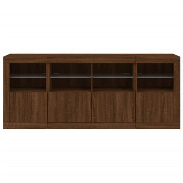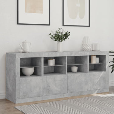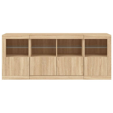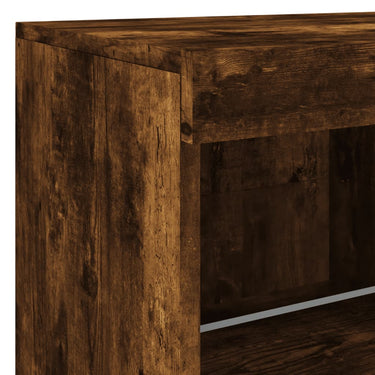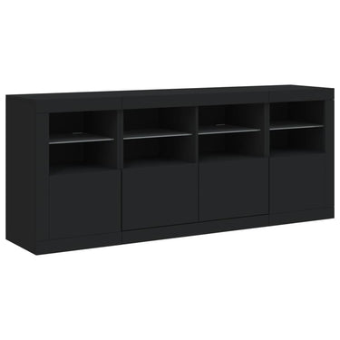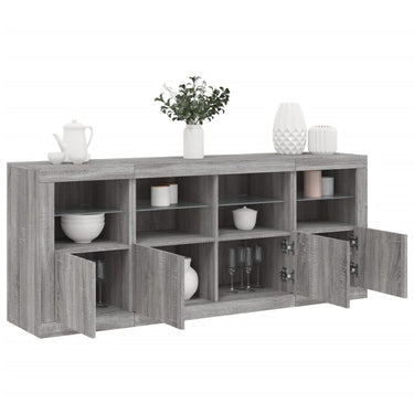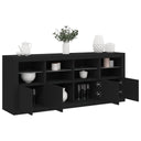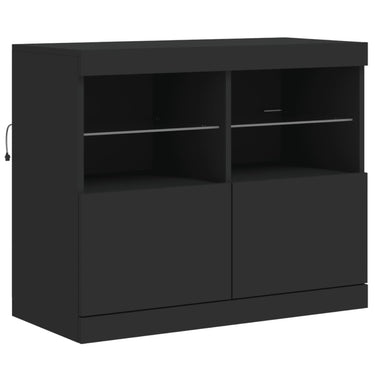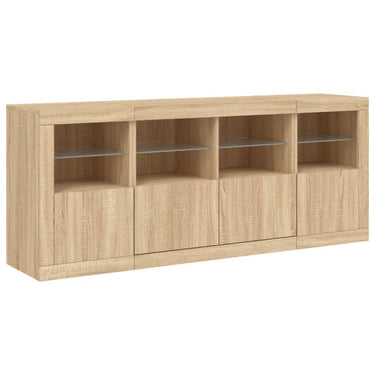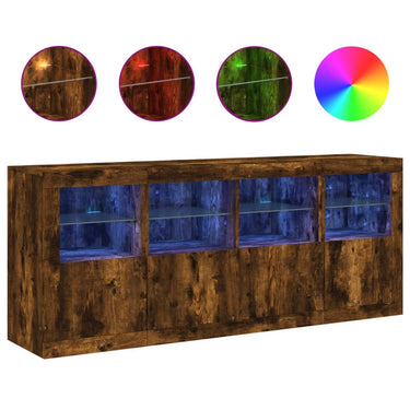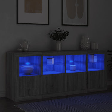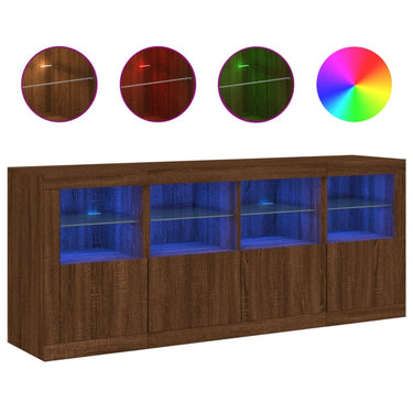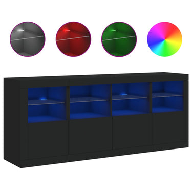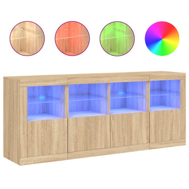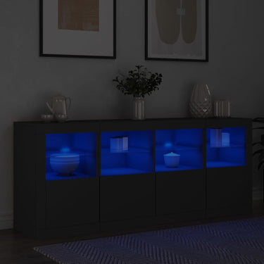 Dekoriere dein Zuhause mit diesem modernen Sideboard mit LED-Beleuchtung, das sich leicht mit Möbeln in jedem Stil kombinieren lässt. Langlebiges Material: Der Holzwerkstoff ist von außergewöhnlicher Qualität mit glatter Oberfläche und zeichnet sich außerdem durch Festigkeit, Stabilität und Widerstandsfähigkeit gegen Feuchtigkeit aus.RGB-LED-Lichter: Das Buffet ist mit leuchtenden RGB-LED-Leuchten ausgestattet. Mit verschiedenen anpassbaren Menüs kannst du die Farbe der Lichter mühelos ändern und sie sogar so einstellen, dass sie sich automatisch anpassen. Diese LED-Leuchten unterstreichen nicht nur den modernen Look des Sideboards, sondern tragen auch zu seiner trendigen Ausstrahlung bei.Ausreichend Stauraum: Der Aufbewahrungsschrank bietet viel Platz, um deine alltäglichen Dinge übersichtlich und leicht zugänglich aufzubewahren.Präsentationsfunktion: Die robuste Oberseite des Flurschranks eignet sich ideal zum Ausstellen von Dekorationsgegenständen, Bilderrahmen oder Topfpflanzen.Praktische Türen: Verstecke deine Utensilien hinter den Türen des Seitenschranks, um sie vor Staub zu schützen. Gut zu wissen:Das Produkt verfügt über einen USB-Anschluss, für den eine zertifizierte 5V-USB-Stromquelle erforderlich ist (nicht im Lieferumfang enthalten). Achtung:Um ein Umkippen zu vermeiden, sollte dieses Produkt mit der mitgelieferten Wandhalterung gesichert werden.