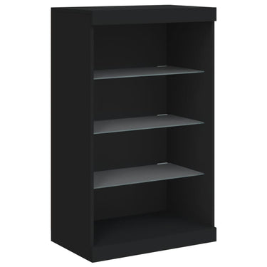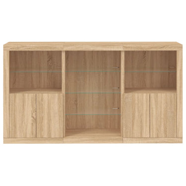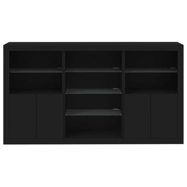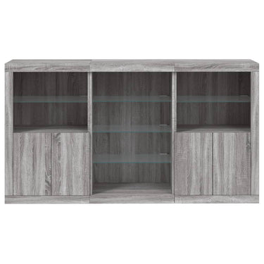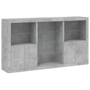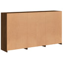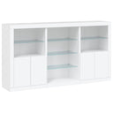 Dekoriere dein Zuhause mit diesem modernen Sideboard mit LED-Beleuchtung, das sich leicht mit Möbeln in jedem Stil kombinieren lässt. Langlebiges Material: Der Holzwerkstoff ist von außergewöhnlicher Qualität mit glatter Oberfläche und zeichnet sich außerdem durch Festigkeit, Stabilität und Widerstandsfähigkeit gegen Feuchtigkeit aus.RGB-LED-Lichter: Das Buffet ist mit leuchtenden RGB-LED-Leuchten ausgestattet. Mit verschiedenen anpassbaren Menüs kannst du die Farbe der Lichter mühelos ändern und sie sogar so einstellen, dass sie sich automatisch anpassen. Diese LED-Leuchten unterstreichen nicht nur den modernen Look des Sideboards, sondern tragen auch zu seiner trendigen Ausstrahlung bei.Ausreichend Stauraum: Der Aufbewahrungsschrank bietet viel Platz, um deine alltäglichen Dinge übersichtlich und leicht zugänglich aufzubewahren.Präsentationsfunktion: Die robuste Oberseite des Flurschranks eignet sich ideal zum Ausstellen von Dekorationsgegenständen, Bilderrahmen oder Topfpflanzen.Praktische Türen: Verstecke deine Utensilien hinter den Türen des Seitenschranks, um sie vor Staub zu schützen. Gut zu wissen:Das Produkt verfügt über einen USB-Anschluss, für den eine zertifizierte 5V-USB-Stromquelle erforderlich ist (nicht im Lieferumfang enthalten). Achtung:Um ein Umkippen zu vermeiden, sollte dieses Produkt mit der mitgelieferten Wandhalterung gesichert werden.