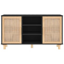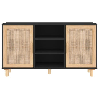 Sideboard Schwarz 105x30x60 cm Massivholz Kiefer Natur-Rattan
