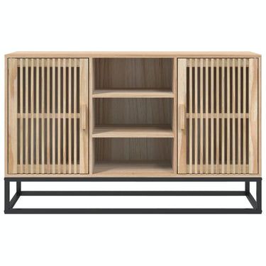 Mit seinem zeitlosen Design ist dieses klassische Sideboard eine ausgezeichnete Bereicherung für Ihr Zuhause. Langlebiges Material: Holzwerkstoff ist ein Material von außergewöhnlicher Qualität mit glatter Oberfläche, das sich durch Festigkeit, Stabilität und Feuchtigkeitsbeständigkeit auszeichnet.Viel Stauraum: Das Sideboard bietet viel Platz, um verschiedene Alltagssachen gut organisiert und in Reichweite aufzubewahren.Holztür: Der Schrank verfügt über Holztüren, die deine Sachen vor Staub und Schmutz zu schützen.Stabiles Eisenbein: Das Eisenbein sorgt für Robustheit und Stabilität.Präsentation: Du kannst auch deine Lieblingsfotos, Dekoartikel oder Topfpflanzen auf der Oberplatte des Schrankes zur Schau stellen, um deinen Wohnraum schöner zu gestalten. Gut zu wissen:Um die Montage so einfach wie möglich zu machen, wird jedes Produkt mit einer Anleitung geliefert. Achtung:Um ein Umkippen zu vermeiden, sollte dieses Produkt mit der mitgelieferten Wandhalterung gesichert werden.