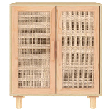 Sideboard Weiß 60x30x70 cm Massivholz Kiefer und Natur-Rattan
