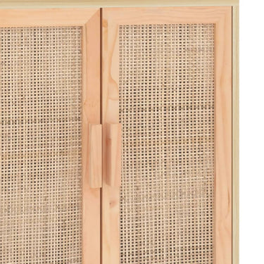 Dieses praktische Sideboard wird unterschiedlichen Anforderungen gerecht und ist eine ideale Ergänzung zu deinem Zimmer. Langlebiges Material: Holzwerkstoff ist ein Material von außergewöhnlicher Qualität mit glatter Oberfläche, das sich durch Festigkeit, Stabilität und Feuchtigkeitsbeständigkeit auszeichnet.Viel Stauraum: Mit 2 Fächern versehen, bietet der Schrank reichlich Stauraum, um verschiedene Alltagssachen gut organisiert und in Reichweite aufzubewahren. Dank der Türen mit Weberei aus natürlichem Ratten ist das Sideboard auch optisch ansprechend.Beine aus massivem Kiefernholz: Die Holzbeine verleihen dem Sideboard eine natürliche und angenehme Optik und sorgen für Stabilität. Daher fügt es sich harmonisch in jede Inneneinrichtung ein.Stabile Oberplatte: Auf der Oberplatte finden deine Lieblingsfotos, Dekoartikel oder Topfpflanzen Platz, um dein Leben zu bereichern. Hinweis:Jedes Produkt wird mit einer Montageanleitung in der Verpackung für eine einfache Montage geliefert. Achtung:Um das Umkippen zu verhindern, muss dieses Produkt mit der mitgelieferten Wandhalterung gesichert werden.