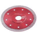 Met gaten is deze diamantschijf, gemonteerd op tafelzagen, doorslijpmachines en slijpmachines, geschikt voor het zagen van beton, graniet, baksteen en andere industriële toepassingen en voor handwerk, zoals bewerking van porselein en steen.