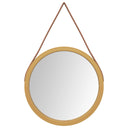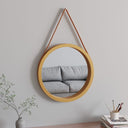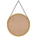 Dieser Vintage-Spiegel ist so konzipiert, dass er ein eindrucksvolles visuelles Statement in jedem Schlaf- oder Wohnzimmer setzt. Dieser trendige Hängespiegel bietet eine elegante Interpretation des Vintage-Designs für moderne Innenräume. Der große runde Spiegel hat einen robusten Holzrahmen aus Paulownia-Holz und einen glatten, weichen Gürtel aus Kunstleder, an dem er an der Wand angebracht werden kann. Mit dem Gürtel kannst du den Spiegel auf jede gewünschte Höhe einstellen, wodurch dieser Dekospiegel mehr Flexibilität verspricht.