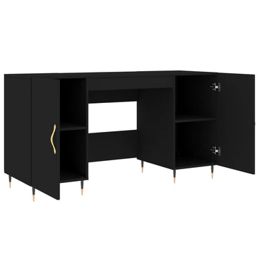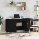 Bringe einen Hauch von elegantem Charme in dein Arbeitszimmer mit diesem praktischen Schreibtisch! Langlebiges Material: Holzwerkstoff ist ein Material von außergewöhnlicher Qualität mit glatter Oberfläche, das sich durch Festigkeit, Stabilität und Feuchtigkeitsbeständigkeit auszeichnet.Reichlich Stauraum: Die 4 Fächer mit Türen an den Seiten des Bürotischs bieten reichlich Stauraum, um Bücher, Akten oder andere nützliche Sachen griffbereit aufzubewahren.Vielfältige Anwendungsmöglichkeiten: Dieser Schreibtisch ist für kleinere Räume konzipiert und eignet sich perfekt für Schlafzimmer, kleine Büros oder Arbeitszimmer.Praktisches Design: Die Eisenfüße verleihen deiner Einrichtung einen industriellen Stil und sorgen gleichzeitig für Stabilität. Die Türgriffe aus Aluminiumlegierung sind stilvoll und langlebig. Achtung:Um ein Umkippen zu vermeiden, sollte dieses Produkt mit der mitgelieferten Wandhalterung gesichert werden.