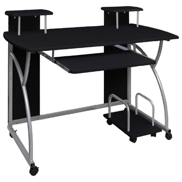Dieser Computertisch ist ein absolutes Muss und fügt sich perfekt in dein Büro, Arbeitszimmer, Schlafzimmer oder Wohnzimmer ein. Langlebiges Material: Holzwerkstoff ist ein Material von außergewöhnlicher Qualität mit glatter Oberfläche, das sich durch Festigkeit, Stabilität und Feuchtigkeitsbeständigkeit auszeichnet. Praktisches Design: Der Gaming-Tisch verfügt über eine breite Arbeitsfläche, die Platz für deinen Computermonitor und deine Maus bietet, während die ausziehbare Tastaturablage für Ordnung auf deinem Schreibtisch sorgt.Viel Platz: Die 2 Ablagen und die breite Arbeitsfläche stellen dir reichlich Stauraum zur Verfügung. Darüber hinaus verfügt dieser Schreibtisch über eine abnehmbare untere Ablage, auf der dein PC-Gehäuse und andere wichtige Computerutensilien Platz finden.Bewegungsfreiheit: Mit Rollen versehen, lässt sich der Schreibtisch einfach umher verschieben. Zudem sind 2 der Rollen mit Bremsen ausgestattet, die in der richtigen Position arretiert werden können, um Kontrolle und Sicherheit zu gewährleisten. Hinweis:Jedes Produkt wird mit einer Montageanleitung in der Verpackung für eine einfache Montage geliefert.