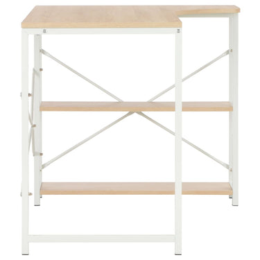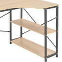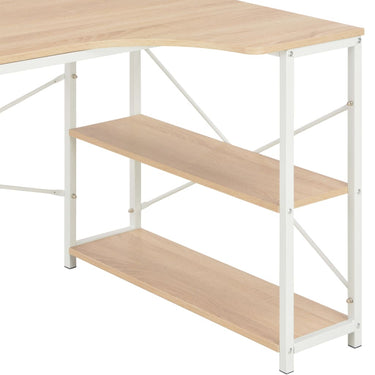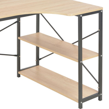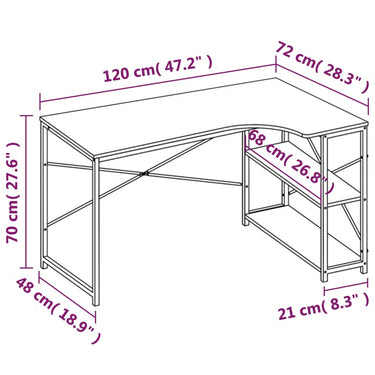 Dieser PC-Tisch weist ein schlichtes, stilvolles Design mit sauberen Linien auf, so dass er immer trendig bleibt. Er bietet einen großen Arbeitsbereich und ist somit ein sehr praktisches und vielseitiges Möbelstück für Ihr Zuhause oder Büro. Der L-förmige Schreibtisch ist mit zwei Regalen ausgestattet, auf denen Sie Ihre Bücher, Ordner, Dokumente oder Dekorationsgegenstände aufbewahren können. Der Schreibtisch aus Holzwerkstoff und pulverbeschichtetem Metall ist äußerst stabil, robust und langlebig. Darüber hinaus verleiht der Metallrahmen dem Schreibtisch einen industriellen Stil und einen Hauch von Charme. Werten Sie Ihr Interieur auf mit diesem modernen Bürotisch!