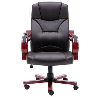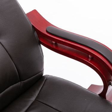 Deze directie bureaustoel heeft een luxe uitstraling. De poot en de armleuningen zijn beiden gemaakt van krasbestendig hout. Het zit- en rug gedeelte zijn bekleedt met zwart leer. De bureau stoel is 360 ° draaibaar en kan doormiddel van een grasdrukveersysteem in hoogte worden versteld. Het rug gedeelte is voorzien van een speciaal kantelmechanisme die naar het lichaamsgewicht is in te stellen. Tevens is de burostoel uitgerust met een verstevigde nek- en hoofdondersteuning.