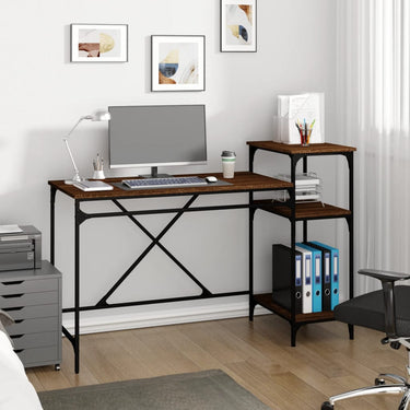 Dieser Schreibtisch hat einen unverwechselbaren industriellen Charme und ist ein Blickfang in deinem Zuhause und Büro. Langlebiges Material: Holzwerkstoff ist ein Material von außergewöhnlicher Qualität mit glatter Oberfläche, das sich durch Festigkeit, Stabilität und Feuchtigkeitsbeständigkeit auszeichnet.Stabiler Rahmen: Das Gestell des Bürotisches ist aus Eisen gefertigt. Eisen ist ein starkes und festes Material, das im Möbelbau oft zum Einsatz kommt.Reichlich Stauraum: Mit seinen 3 Ablagen bietet dieser Computertisch reichlich Stauraum, um verschiedene Alltagssachen gut organisiert und in Reichweite aufzubewahren.Praktische Tischplatte: Auf der großen Arbeitsfläche dieses Bürotisches finden dein Computer, Bürobedarf und andere Sachen Platz.Industrie-Stil: Der Schreibtisch verleiht deiner Einrichtung eine charmante industrielle Note. Er bringt das inspirierte Design alter Fabriken und industrieller Räume in deinen Wohnbereich. Achtung:Um ein Umkippen zu vermeiden, sollte dieses Produkt mit der mitgelieferten Wandhalterung gesichert werden.