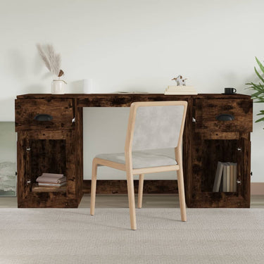 Schreibtisch mit Stauraum Betongrau Holzwerkstoff