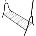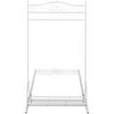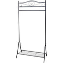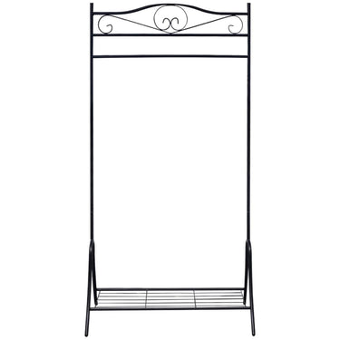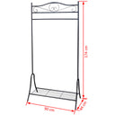 Dieser standfeste Kleiderständer ist eine schnelle und bequeme Aufbewahrungsmöglichkeit für Ihre Kleidung. Er lässt sich überall platzieren und hält Ihre Kleidung faltenfrei und organisiert. Dieser Kleiderständer mit Kleiderstange und Boden schafft extra Stauraum für Ihre Anzüge, Kleider, Schuhe und mehr. Es bietet Ihnen einfachen Zugriff auf Ihre Kleidung und Accessoires. Die eleganten Ornamente machen diesen Kleiderständer dekorativ und praktisch. Durch seine stabile Stahlkonstruktion hat er einen sicheren Stand, ist aber dennoch leicht. Auf dem Boden können Sie Schuhe oder Körbe lagern. Einfacher Aufbau.