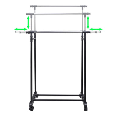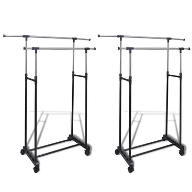 Verstellbarer Kleiderständer 4 Rollen 2 Kleiderstangen