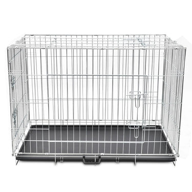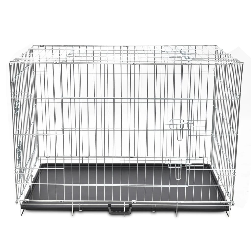 Diese faltbare Hundebox wird von großer Hilfe beim Trainieren und Transportieren Ihres vierbeinigen Freundes sein. Da sie sicher und haltbar ist und eine einzigartige Gestaltung aufweist, kann sie überall in Ihrem Haus platziert werden. Der Käfig verfügt über ein cleveres, faltbares Design, so dass er bei Nichtgebrauch nur wenig Stauraum benötigt. Außerdem verfügt der Hundekäfig über 3 robuste Türen, die nicht nur für einen leichten Zugang sorgen, sondern stellen auch sicher, dass Ihr Hund nicht durch die Türen entkommt. Der Schwerlast-Stahlrahmen sorgt für maximale Festigkeit und Stabilität und macht diesen Hundekäfig zu einem der sichersten, die auf dem Markt erhältlich sind. Außerdem ist der Käfig mit einer festen, pflegeleichten Bodenverkleidung aus Kunststoff versehen. Dieser faltbare Käfig hat ein einfaches Aussehen und eine haltbare, rostbeständige, galvanisierte Ausführung. Dank der starken Bauweise ist Ihr Haustier sicher untergebracht. Da er eine kompakte Größe hat, ist der Käfig ideal für Decks, Terrassen, Höfe und Garagen.