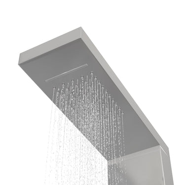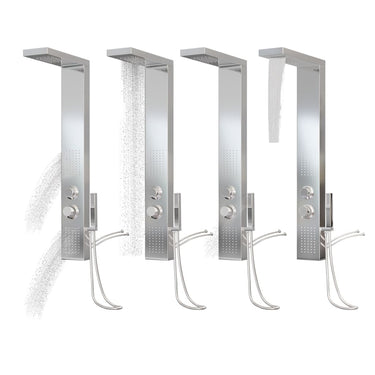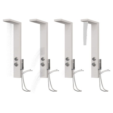 Dieses multifunktionale Duschpaneel-System hat ein stilvolles und natürliches Design und wird Ihr Bad wunderbar ergänzen und ästhetisch aufwerten. Diese Duschkabine besteht aus strapazierfähigem Aluminium und besitzt eine wunderschöne, viereckige Form. Sie verfügt über vier Modi: Regenfalldusche, Kaskadendusche (Wasserfall), Massagedüsen und einen Handduschkopf, welche ganz einfach mit einem Regler ausgewählt werden können. Verwöhnen und entspannen Sie sich mit diesem einzigartigen Duscherlebnis und genießen Sie die moderne Optik dieses wunderschön entworfenen Duschpaneel-Systems.