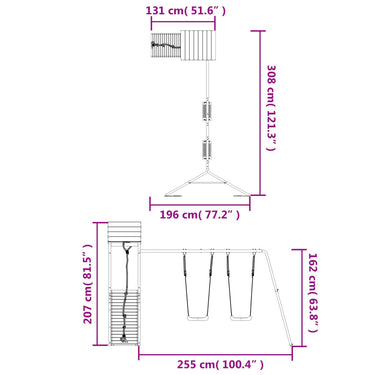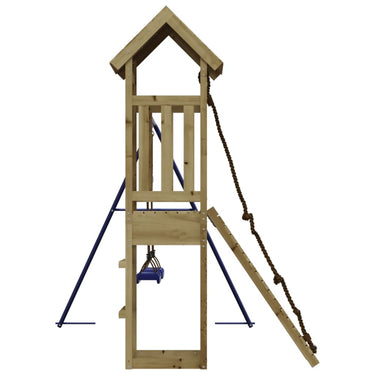 Möchtest du deinen Kindern ihren eigenen Spielplatz schenken? Dieser Spielplatz aus Holz ermöglicht fantasievolle Abenteuer im eigenen Garten! Langlebiges Material: Dieses Spielhaus ist aus unter Kesseldruck imprägniertem Kiefernholz gefertigt. Massives Kiefernholz ist ein schönes Naturmaterial. Kiefernholz weist eine gerade Maserung auf und die Aststellen verleihen dem Holz seine charakteristische, rustikale Optik. Die Kesseldruckimprägnierung ist ein Konservierungsverfahren, das mit Hilfe von Autoklaven durchgeführt wird. Sie erhöht die Resistenz gegen Fäulnis und Wasser. Robuster und stabiler Rahmen: Der Holzrahmen verleiht dem Garten-Klettergerüst Robustheit und Stabilität. Zudem gewährleistet das A-förmige Gestell die Stabilität der Kinderschaukel. Spielzentrum: Der Spielturm verfügt über eine 90 cm hohe Plattform, eine Kletterwand mit Seil, eine Doppelschaukel sowie einen Sandkasten. So können deine Kleinen auch ihre Freunde zum Mitspielen einladen. Durchdachtes Design: Die umlaufenden Holzgeländer gewährleisten die Sicherheit der Kinder beim Spielen. Zudem spendet das Holzdach an heißen Sommertagen Schatten. Unendlicher Spaß: Dieses lustige Spielhaus aus Holz bietet deinen Kindern und ihren Freunde die perfekte Möglichkeit, Spaß zu haben, nach Herzenslust zu spielen und tolle Erinnerungen fürs Leben zu schaffen! Achtung:Nur für den HausgebrauchFür den Außenbereich Nicht geeignet für Kinder unter 3 Jahren Empfohlenes Benutzeralter: 3-8 Jahre Maximales Gewicht pro Benutzer: 45 kg Hinweis:Das Produkt muss zur Verringerung der Kippgefahr verankert werden; Anker sind nicht im Lieferumfang enthalten. Gut zu wissen:Um die Montage so einfach wie möglich zu machen, wird jedes Produkt mit einer Anleitung geliefert.