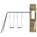 Möchtest du deinen Kindern ihren eigenen Spielplatz schenken? Dieser Spielplatz aus Holz ermöglicht fantasievolle Abenteuer im eigenen Garten! Kesseldruckimprägniertes Holz: Dieses Garten-Klettergerüst ist aus kesseldruckimprägniertem Kiefernholz gefertigt. Kiefer-Massivholz ist ein schönes Naturmaterial. Kiefernholz weist eine gerade Maserung auf und die Aststellen verleihen dem Holz seine charakteristische, rustikale Optik. Die Kesseldruckimprägnierung ist ein Konservierungsverfahren, das mit Hilfe von Autoklaven durchgeführt wird. Sie erhöht die Fäulnis- und Witterungsbeständigkeit des Holzes.Robuster und stabiler Rahmen: Der Spielgerät-Rahmen aus Holz sorgt für Robustheit und Sicherheit. Außerdem sorgt das "A"-förmige Gestell der Kinderschaukel für Stabilität.Spielzentrum: Der Spielturm verfügt über eine 90 cm hohe Plattform, eine Kletterwand mit Seil, eine Doppelschaukel sowie einen Sandkasten. So können deine Kleinen auch ihre Freunde zum Mitspielen einladen.Durchdachtes Design: Die umlaufenden Holzgeländer gewährleisten die Sicherheit der Kinder beim Spielen. Zudem spendet das Holzdach an heißen Sommertagen Schatten.Unendlicher Spielspaß: Dieses lustige Spielgerät ist die perfekte Möglichkeit für deine Kinder und ihre Freunde, sich zu beschäftigen, mehr Spaß miteinander zu haben und Erinnerungen zu schaffen! Achtung:Nur für den HausgebrauchFür den AußenbereichNicht geeignet für Kinder unter 3 JahrenEmpfohlenes Benutzeralter: 3-8 Jahre Maximales Gewicht pro Benutzer: 45 kg Hinweis:Das Produkt muss zur Verringerung der Kippgefahr verankert werden; Anker sind nicht im Lieferumfang enthalten. Gut zu wissen:Um die Montage so einfach wie möglich zu machen, wird jedes Produkt mit einer Anleitung geliefert.