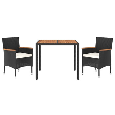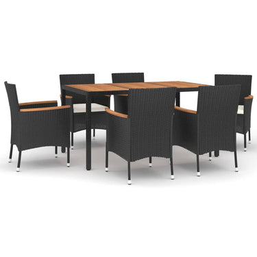 An dieser stilvollen Garten-Essgruppe genießen Sie eine gemütliche und komfortable Zeit mit Ihrer Familie und Freunden. Wetterfestes Material: PE-Rattan, auch als Poly Rattan bekannt, ist witterungsbeständig und pflegeleicht. Seine Oberfläche weist lange Zeit eine ansprechende Optik auf. Es bietet hohe Qualität, Komfort und einen ästhetisches Look. Massives Akazienholz: Akazien-Massivholz ist ein schönes Naturmaterial. Akazienholz ist ein tropisches Hartholz, das dicht, robust und langlebig ist.Robustes und stabiles Gestell: Die pulverbeschichteten Stahlrahmen verleihen der Essgruppe Robustheit und Stabilität. Bequemes Sitzerlebnis: Die dick gepolsterten Kissen der Essstühle bieten höchsten Sitzkomfort.Praktischer Tisch: Die Tischplatte ist aus massivem Akazienholz gefertigt, das sich mit einem feuchten Tuch leicht reinigen lässt. Darüber hinaus bietet die stabile Tischplatte den perfekten Platz für Speisen, Getränke oder einige Dekoartikel.Flexibles Design: Dank der Leichtbauweise lassen sich diese Gartenstühle leicht umstellen. Hinweis:Damit deine Gartenmöbel lange schön bleiben, empfehlen wir dir, sie mit einer wasserdichten Hülle zu schützen.