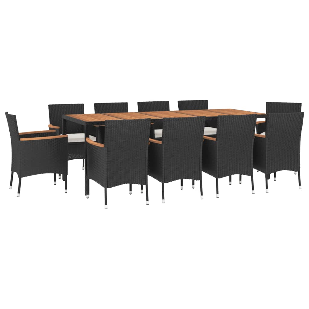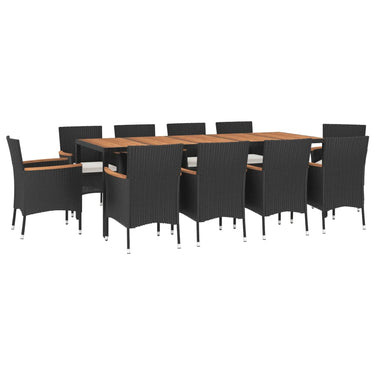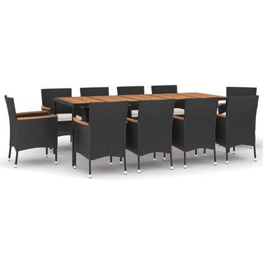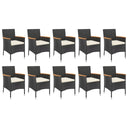 11-tlg. Garten-Essgruppe mit Kissen Schwarz Poly Rattan