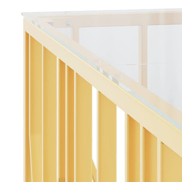 Dank seiner Kombination aus Funktionalität und Schönheit wird dieser Couchtisch zum Mittelpunkt deines Zuhauses. Langlebiges Material: Edelstahl ist robust und langlebig und somit ist dieses Möbelstück für den langfristigen Einsatz vorgesehen. Außerdem ist es sehr korrosions- und rostbeständig.Glatte Tischplatte: Die glatte Tischplatte aus Glas lässt sich mit einem feuchten Tuch leicht reinigen und eignet sich perfekt zum Abstellen von Speisen, Getränken und anderen Dekoartikeln.Vielseitig einsetzbar: Dieser Beistelltisch kann als Couchtisch, Ablagetisch oder Wohnzimmertisch verwendet werden.