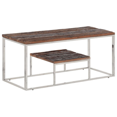 Couchtisch Silbern Edelstahl und Altholz Massiv