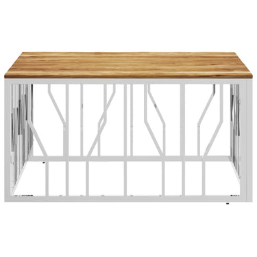 Couchtisch Silbern Edelstahl und Altholz Massiv