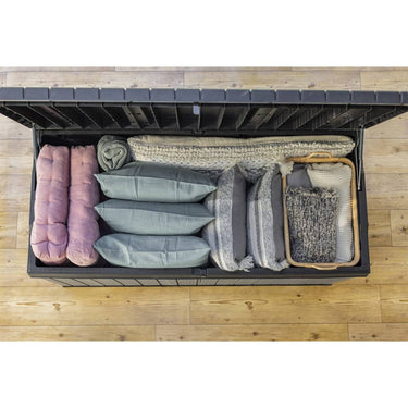 - 380 liter inhoud: deze Darwin opslagbak heeft een ruime inhoud en biedt plaats aan buitenkussens en tuinaccessoires. Zo houd je je terras, patio en tuin opgeruimd.