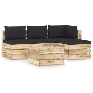 De pallet loungeset is gemaakt van geïmpregneerd grenenhout, waardoor hij duurzaam en weerbestendig is. Deze tuinset heeft een massieve constructie en vergt weinig onderhoud. Dankzij de dik gevoerde kussens biedt deze meubelset het hoogste comfort. Verder maakt het modulaire design het mogelijk om de set in elke gewenste opstelling te plaatsen.