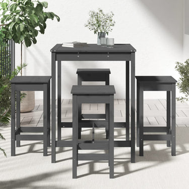 5-tlg. Gartenbar-Set Schwarz Massivholz Kiefer