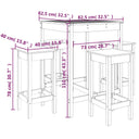 Genieße dein Lieblingsgetränk oder eine angenehme Mahlzeit mit Familie und Freunden an diesem Gartenbar-Set aus Holz! Massives Kiefernholz: Dieses Bar-Set ist aus massivem Kiefernholz gefertigt. Massives Kiefernholz ist ein wunderschönes Naturmaterial. Kiefernholz weist eine gerade Maserung auf und die Aststellen verleihen dem Material seine charakteristische, rustikale Optik.Robuste Tischplatte: Die robuste Tischplatte des Bartisches bietet den perfekten Platz für Getränke, Speisen oder einige Dekoartikel.Praktisches Design: Die Barhocker aus Holz besitzen keine Rückenlehnen, sodass du bequem auf beiden Seiten der Hocker sitzen und sie bei Nichtgebrauch unter der Tischplatte verstauen kannst.Vielseitig einsetzbar: Mit seinem minimalistischen Design fügt sich das Terrassenbar-Set in jede Ecke des Gartens, der Terrasse, des Balkons, des Hinterhofs usw. harmonisch ein. Hinweis:Damit deine Gartenmöbel lange schön bleiben, empfehlen wir dir, sie mit einer wasserdichten Hülle zu schützen.
