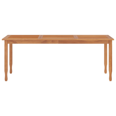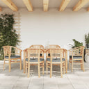 Mit ihrem eleganten und klassischen Design ist diese Garten-Essgruppe aus Holz eine großartige Wahl zum Speisen oder Entspannen im Garten. Massives Teakholz: Massives Teakholz ist ein wunderschönes Naturmaterial. Es wurde abgelagert, getrocknet und anschließend fein geschliffen, um eine sehr glatte Optik und Haptik zu erhalten. Teakholz ist für seine außergewöhnliche Festigkeit und Witterungsbeständigkeit bekannt.Bequemes Sitzerlebnis: Dank der ergonomischen Rückenlehne genießt du einen hervorragenden Sitzkomfort.Große Tischplatte: Der Esstisch aus Holz bietet dir eine geräumige Tischplatte. Hier kannst du deine Snacks, Getränke und deine Lieblingsdekoration platzieren.Einfache Reinigung: Dank der Holzlasur auf Wasserbasis lässt sich die Outdoor-Essgruppe mit einem feuchten Tuch leicht reinigen. Gut zu wissen:Damit deine Gartenmöbel lange schön bleiben, empfehlen wir dir, sie mit einer wasserdichten Hülle zu schützen.