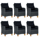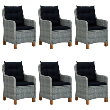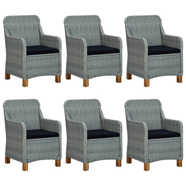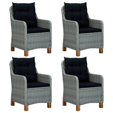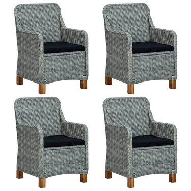 Schaffen Sie mit dieser Garten-Essgruppe eine überzeugende und zusammenhängende Ästhetik in Ihrem Außenbereich! Der Esstisch ist aus massivem Akazienholz gefertigt und mit einem Ölfinish versehen, was ihn stabil, langlebig und pflegeleicht macht. Der Gartenstuhl verfügt über einen pulverbeschichteten Stahlrahmen, der mit rundem PE-Rattan überzogen ist, und ist daher robust und leicht zu reinigen. Die dick gepolsterten Kissen sorgen für zusätzlichen Komfort. Der Kissenbezug ist mit einem Reißverschluss versehen und somit abnehmbar und waschbar. Die Beine aus massivem Akazienholz tragen zur Robustheit und Stabilität des Möbelsets bei. Darüber hinaus lassen sich die Gartenstühle dank ihrer Leichtbauweise auch leicht umstellen. Wichtiger Hinweis: Wir empfehlen, die Essgruppe bei Regen, Schnee und Frost für eine lange Lebensdauer abzudecken.