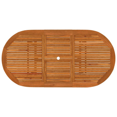 Diese Garten-Essgruppe aus Holz hat ein rustikales zeitloses Design und ist eine hervorragende Wahl für Mahlzeiten im Garten oder auf der Terrasse! Massives Eukalyptusholz: Massives Eukalyptusholz ist ein wunderschönes Naturmaterial. Eukalyptusholz ist extrem dicht und wasserabweisend. Das Material ist für seine satte rotbraune Farbe bekannt.Ausziehbarer Esstisch: Dank seiner besonderen Konstruktion kann dieser Holztisch ausgezogen werden, wenn mehr Platz benötigt wird.Praktisches Schirmloch: Dieser Tisch im Freien ist mit einem Loch für deinen Sonnenschirm versehen, um dich vor Sonnenlicht und Regen zu schützen.Liegestühle aus Holz: Die Gartenstühle verfügen über geschwungene Sitzflächen und Rückenlehnen. Zudem lässt sich die Rückenlehne in 5 Positionen verstellen, um stets eine bequeme Position zu finden.Klappbares Design: Bei Nichtgebrauch lassen sich die Stühle platzsparend zusammenklappen. So kannst du sie leicht mitnehmen. Hinweis:Um die Lebensdauer deiner Gartenmöbel zu verlängern, empfehlen wir dir, sie mit einer wasserdichten Hülle zu schützen.