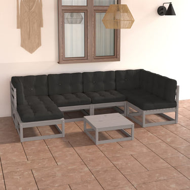 7-tlg. Garten-Lounge-Set mit Kissen Massivholz Kiefer