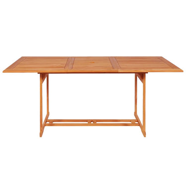 Diese Holz-Garten-Essgruppe eignet sich perfekt zum Essen oder Entspannen im Garten oder auf der Terrasse. Sie ist auch für den Innenbereich ideal geeignet. Das für dieses Möbelstück verwendete Teakholz ist technisch getrocknet und anschließend fein geschliffen worden, um ein sehr glattes Erscheinungsbild zu erzielen. Teakholz ist für seine außergewöhnliche Festigkeit und Witterungsbeständigkeit geschätzt und eignet sich daher weitaus besser für Gartenmöbel als jede andere Holzart. Teakholz ist die perfekte Wahl, wenn Sie ein langlebiges Möbelstück haben möchten. Das Set weist ein schönes Finish auf, das dem Holz eine warme Farbe verleiht. Der Tisch ist mit einem Loch für einen Sonnenschirm versehen, um Schutz vor der Sonne zu bieten. Außerdem sind diese Stühle bei Nichtgebrauch stapelbar, um Stauraum zu sparen. Das Möbelset bietet Ihnen Komfort und Bequemlichkeit, um die Zeit mit Ihrer Familie und Freunden zu genießen. Darüber hinaus ist das Set mit einem feuchten Tuch ganz einfach zu reinigen.