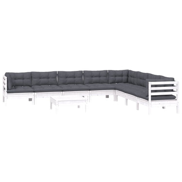 9-tlg. Garten-Lounge-Set mit Kissen Weiß Kiefer Massivholz
