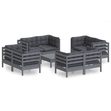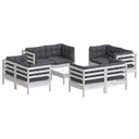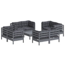 9-tlg. Garten-Lounge-Set mit Grauen Kissen Kiefernholz