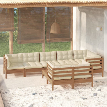 9-tlg. Garten-Lounge-Set mit Kissen Weiß Kiefer Massivholz