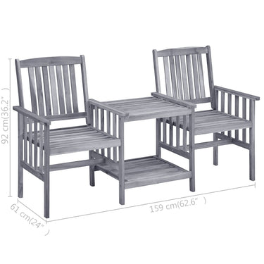 Erleben Sie eine wunderbare Teezeit mit diesen rustikalen Gartenstühlen mit Teetisch aus Holz. Sie werden eine wirklich benutzerfreundliche und auffällige Ergänzung zu Ihrem Garten oder Ihrer Terrasse sein. Der Tisch und die Stühle sind aus massivem Akazienholz gefertigt und dadurch äußerst stabil und robust. Die stabile Tischplatte und die untere Ablage bieten den idealen Platz für Tassen, Bücher und andere Kleinigkeiten. Die Rückenlehnen und Armlehnen der Stühle sorgen für ein erholsames Sitzerlebnis. Zudem sorgen die Kissen für zusätzlichen Komfort. Jedes Kissen verfügt über zwei Sätze Bänder, womit es fest am Bistro-Set befestigt werden kann. Hinweis: Um die Lebensdauer Ihrer Gartenmöbel zu verlängern, empfehlen wir Ihnen, diese regelmäßig zu reinigen und im Freien vor Niederschlägen oder starken Sonnenstrahlen zu schützen.Reinigung: Verwenden Sie eine milde SeifenlösungLagerung: Wenn möglich, an einem kühlen, trockenen Ort im Innenbereich lagern. Wenn das Produkt im Freien gelagert wird, schützen Sie es mit einer wasserdichten Abdeckung. Wischen und trocknen Sie das überschüssige Wasser oder den Schnee nach Regen oder Schneefall von ebenen Flächen. Sorgen Sie für eine ausreichende Luftzirkulation, um feuchtigkeitsbedingte Schäden zu vermeiden.