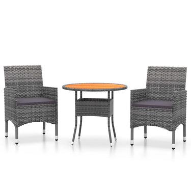 3-tlg. Garten-Essgruppe Poly Rattan Grau