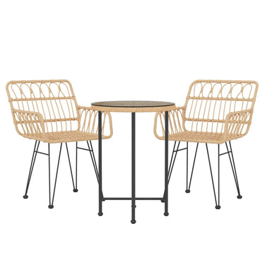 Schaffen Sie mit dieser Garten-Essgruppe eine überzeugende und zusammenhängende Ästhetik in Ihrem Außenbereich! Langlebiges Material: PE-Rattan, auch als Poly Rattan bekannt, ist witterungsbeständig und pflegeleicht. Seine Oberfläche weist lange Zeit eine ansprechende Optik auf. Es bietet hohe Qualität, Komfort und einen ästhetisches Look.Robuster und stabiler Rahmen: Dank des Stahlrahmens ist die Essgruppe robust, stabil und für den täglichen Einsatz im Freien geeignet.Praktische Tischplatte: Die glatte Tischplatte des Esstisches besteht aus Hartglas, das sich leicht mit einem feuchten Tuch reinigen lässt. Zudem bietet die robuste Tischplatte den perfekten Platz für Speisen, Getränke und einige Dekoartikel.Komfortable Sitzgelegenheit: Der Essstuhl ist mit einer Rückenlehne und Armlehnen ausgestattet, um höchsten Sitzkomfort zu bieten.Praktische Fußkappen: Das Bistro-Set ist mit Fußkappen ausgestattet, die für einen sicheren Stand auf dem Boden sorgen. Hinweis:Um die Lebensdauer deiner Gartenmöbel zu verlängern, empfehlen wir dir, sie mit einer wasserdichten Hülle zu schützen.Jedes Produkt wird mit einer Montageanleitung in der Verpackung für einen einfachen Zusammenbau geliefert.