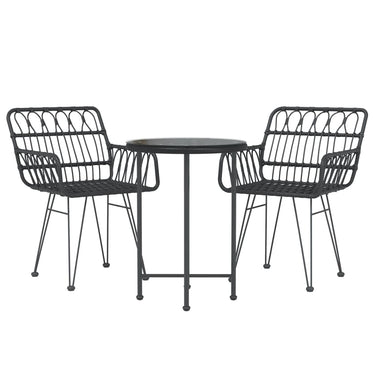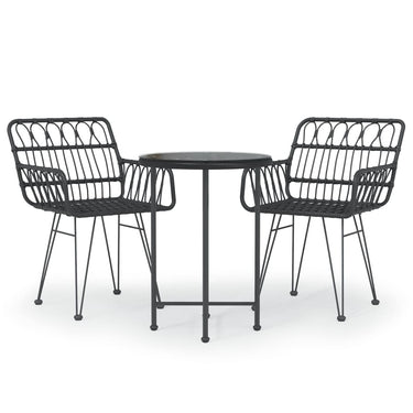 3-tlg. Garten-Essgruppe Schwarz Poly Rattan