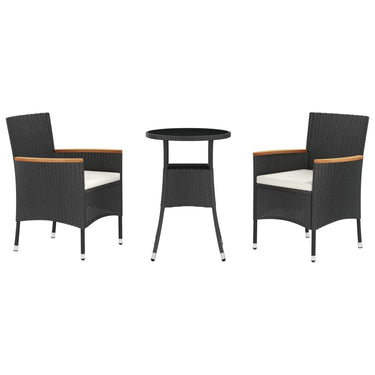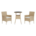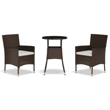An diesem stilvollen Garten-Bistro-Set können Sie eine entspannte und angenehme Zeit mit Ihrer Familie und Ihren Freunden verbringen. Langlebiges Material: PE-Rattan, auch als Poly Rattan bekannt, ist witterungsbeständig und pflegeleicht. Seine Oberfläche weist lange Zeit eine ansprechende Optik auf. Es bietet hohe Qualität, Komfort und einen ästhetisches Look. Robuster und stabiler Rahmen: Die pulverbeschichteten Stahlrahmen verleihen den Gartenmöbeln Robustheit und Stabilität. Bequemes Sitzerlebnis: Mit Rücken- und Armlehnen versehen, bieten diese Garten-Bistrostühle höchsten Komfort. Zum hohen Sitzkomfort tragen auch die dick gepolsterten Kissen bei. Robuste Tischplatte: Die robuste Tischplatte des Bistrotisches bietet den perfekten Platz für Kaffeetassen, Getränke, Vasen, Obstschalen oder einige Dekoartikel. Hinweis:Damit deine Gartenmöbel lange schön bleiben, empfehlen wir dir, sie mit einer wasserdichten Hülle zu schützen.